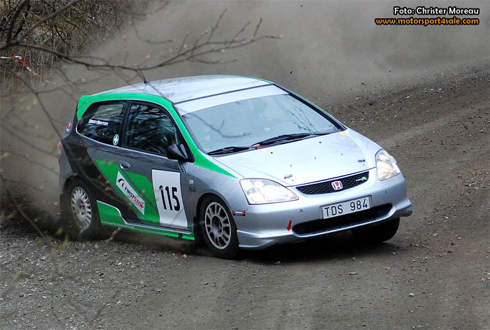 – Först handlar det om bilen, vi har under en tid jobbat stenhårt för att få till väghållningen på Hondan och i samarbete med Öhlins Auto Norden utvecklat fjäderbenens konstruktion och bland annat schimsat in dämparna enligt nya tankar. Detta har gjort bilen betydligt mer lättkörd. För det andra så har jag och kartläsaren Esmeralda jobbat med personlig utveckling inom körteknik och notläsning. Esmeralda gör sin första säsong men är redan mycket duktig. Sist men inte minst ett stort tack till alla runt omkring oss som stöttar på olika sätt. Vi skall fortsätta göra så gott vi kan och hålla tempot uppe.