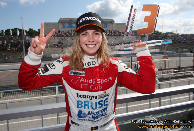 Mikaela Åhlin-Kottulinsky svarade upp till förväntningarna i de tuffa racen på Norisring. I det avslutande racet på söndagen i Audi TT Sport Cup körde hon till sig en tredjeplats, och hon satte dessutom dagens snabbaste tid.