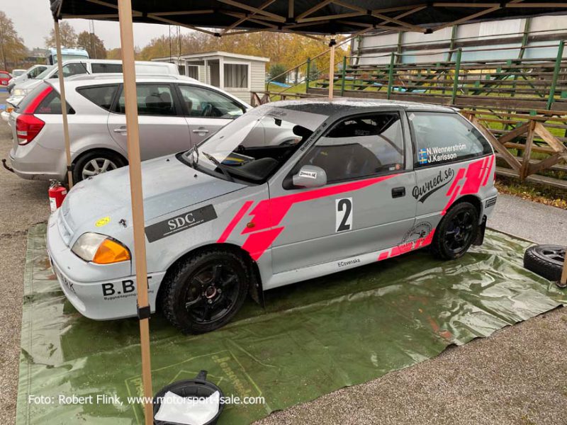 Här är depåbilder inför Noratrofén, en rallysprint med 39 deltagare som ska köra en sträcka tre gånger. Vädret inför starten var 2-3 plusgrader och gråmulet med vackra färger på träden.