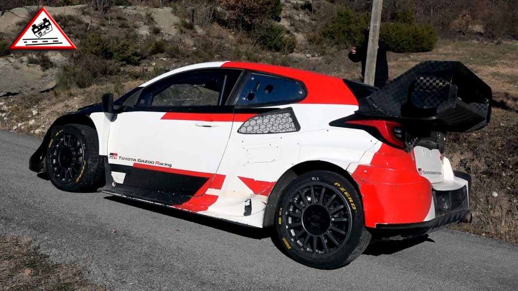Ett håll-i-hatten-klipp franska Col de Félines där Sébastien Ogier testade sin 2023 års Rally1-Yaris.
